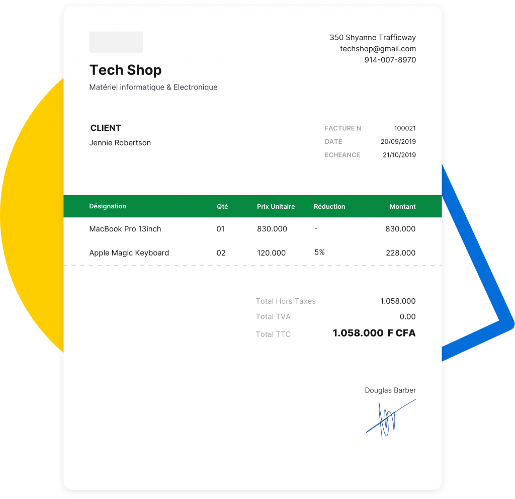 Afin de vous aider à pouvoir facilement facturer vos clients, Kudizy vous offre son logiciel de facturation en ligne. Il vous propose une application adaptée à vos besoins d’entrepreneur africain. Kudizy remplit parfaitement les critères en vigueur quant aux mentions devant figurer sur les factures et vous permet de délivrer vos factures et vos pro formas avec une simplicité sans précédent.